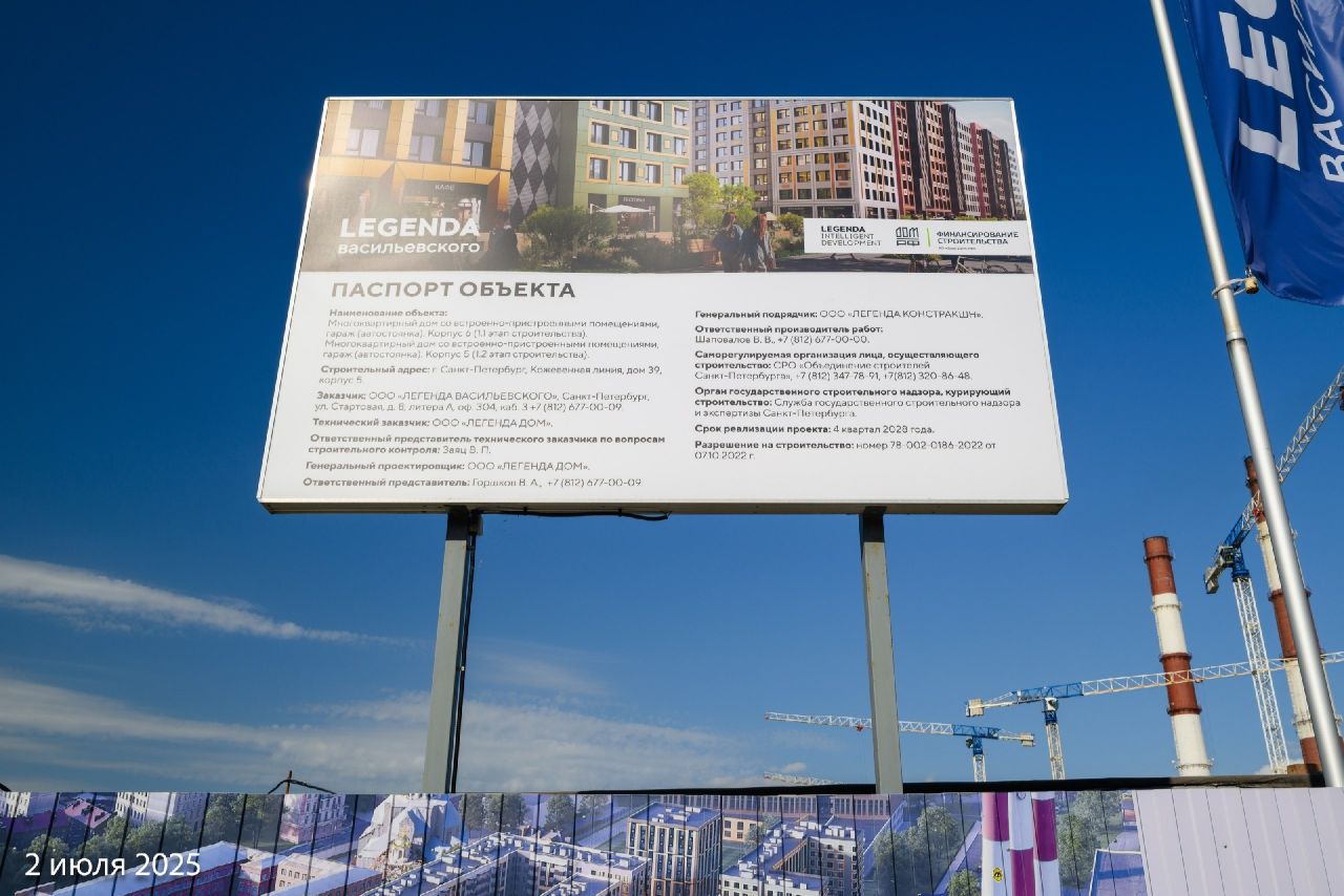 Ход строительства ЖК «LEGENDA Васильевского» от 1 июля 2025