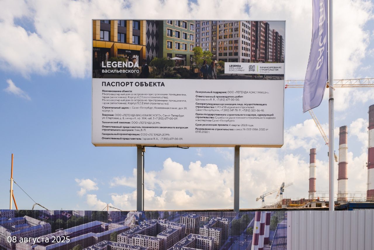 Ход строительства ЖК «LEGENDA Васильевского» от 1 августа 2025