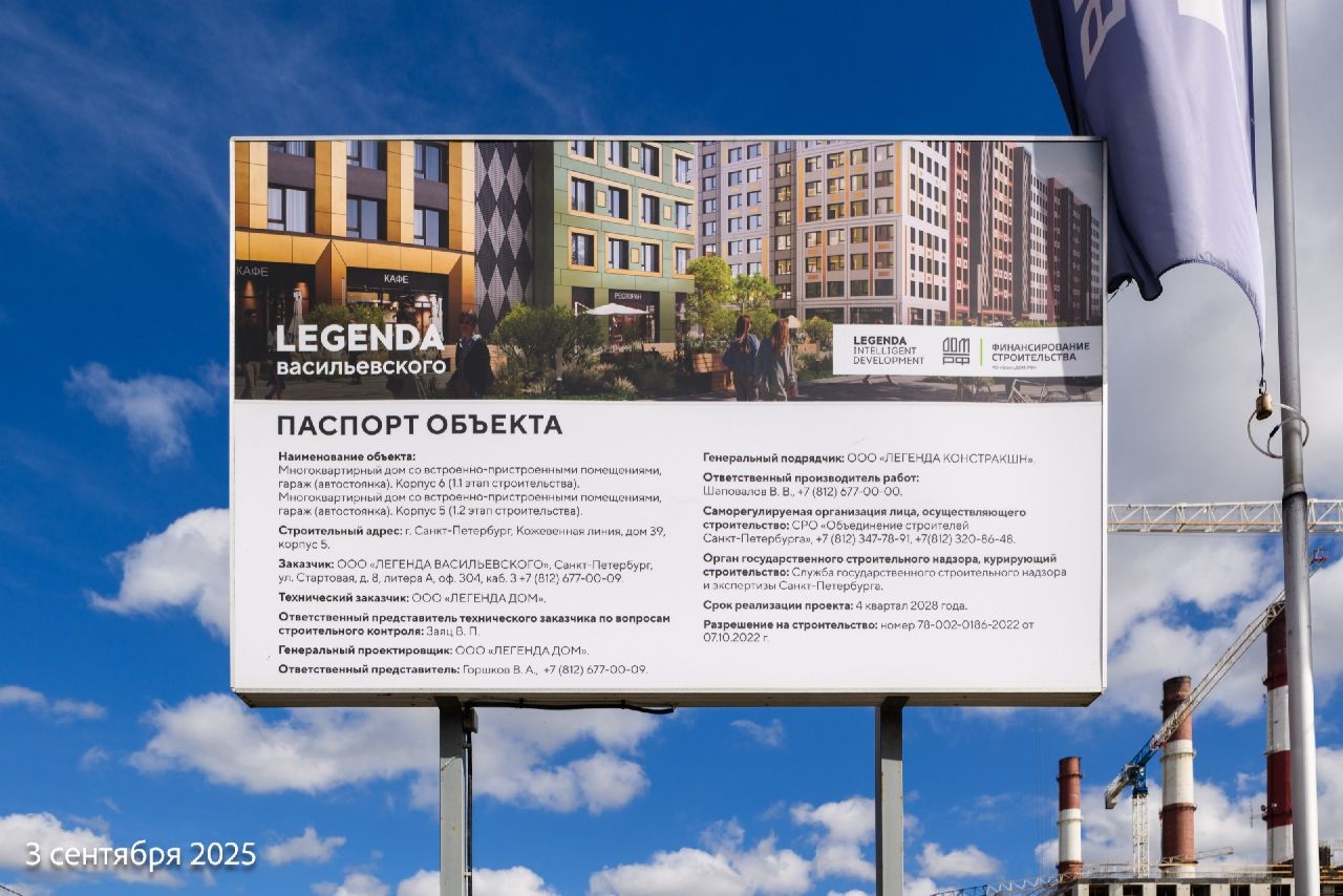 Ход строительства ЖК «LEGENDA Васильевского» от 1 сентября 2025