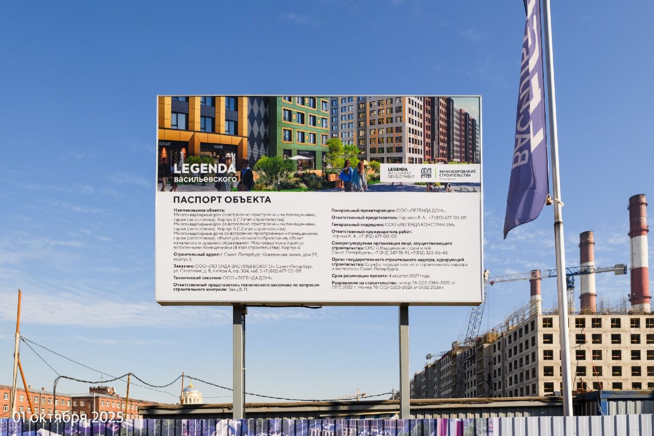 Ход строительства ЖК «LEGENDA Васильевского» от 1 октября 2025