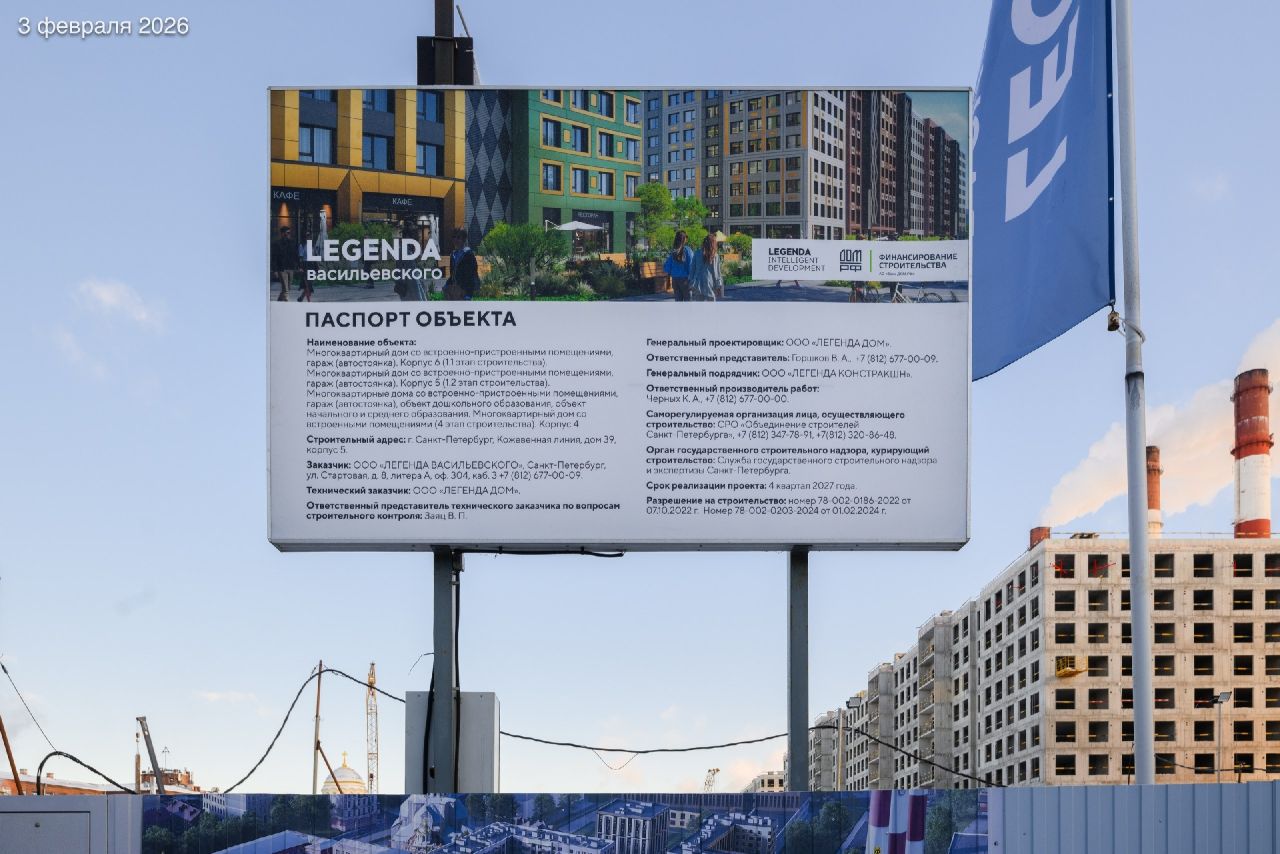 Ход строительства ЖК «ЛЕГЕНДА Васильевского» от 1 февраля 2026